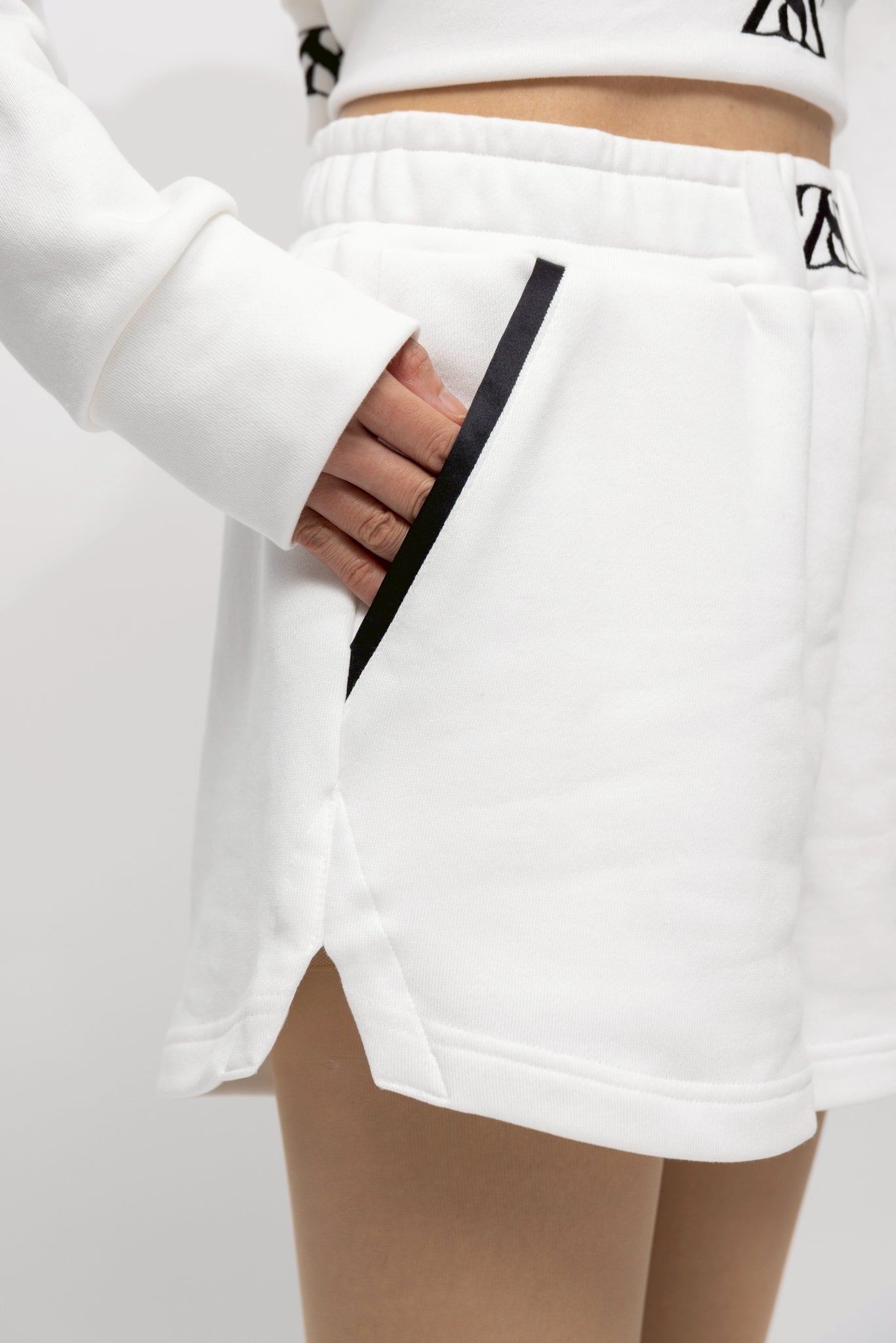 日常へ“瞬間的にラグジュアリー”を差し込む、Z8Zの解釈によるショートパンツ。リラックス感のあるスウェット素材でありながら、計算されつくした配色のラインやディテールにより、ストリートの抜け感とモードな洗練さを両立させました。