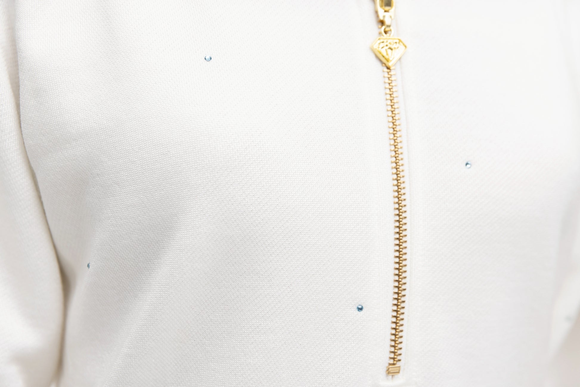 イタリア語からつけた造語で「赤い美しさ」を意味する“ロッソビューテ”。スウェットフーディーに、アクセントのラインストーンが惜しみなくちりばめられている一着が、日常に華やかさを差し込みます。